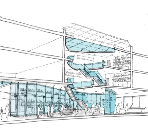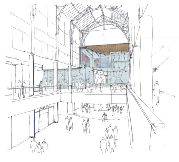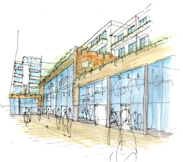 Sketch illustrations form an important part of the realisation of a project. Included below are a number of sketches that have been produced for past projects to illustrate ideas to clients, planners, or to market properties to potential tenants. In many instances these have been more successful than a CGI because they seem to capture the essence of a concept.