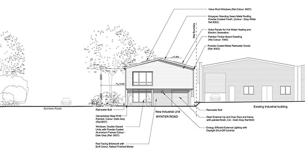Planning permission was granted for a new build industrial unit on Somers Road, Rugby at the beginning of 2013. This small unit will provide space for a local company to occupy by the end of the year. The architecture was designed to be of good quality materials and detailing to be an example of a good quality industrial unit. The project will also incorporate many sustainable measures.